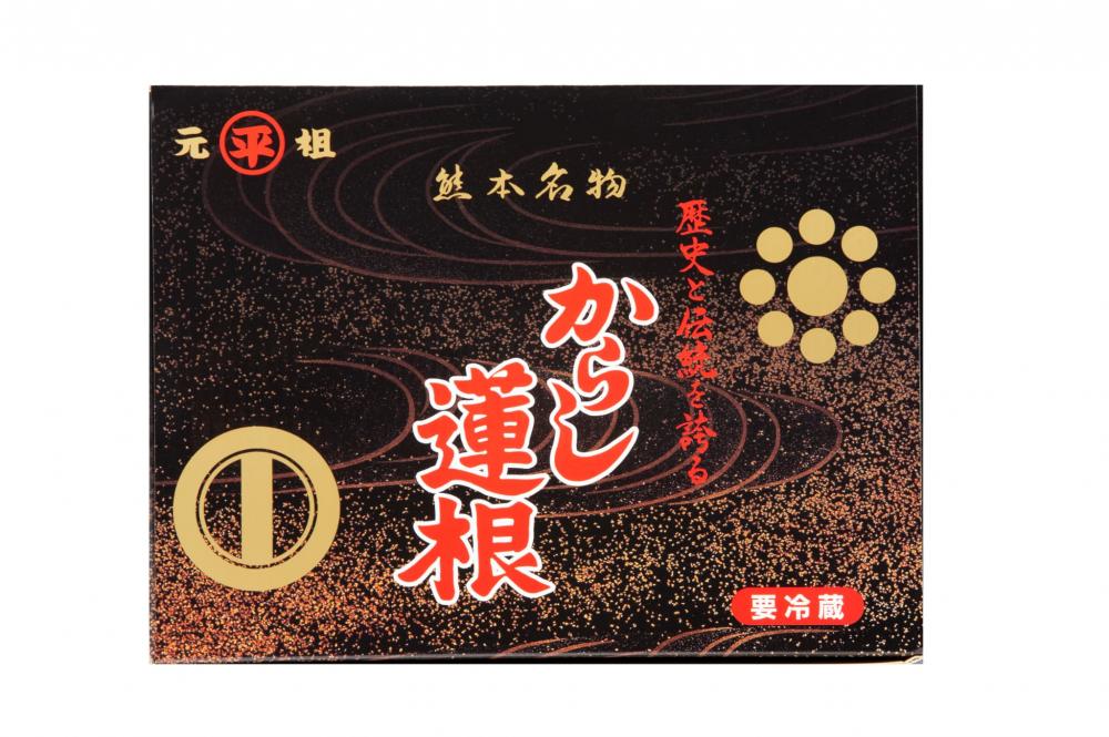 からし蓮根の大サイズ(550g前後)が3本、箱に入った商品です。